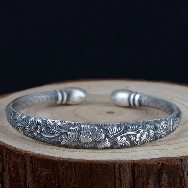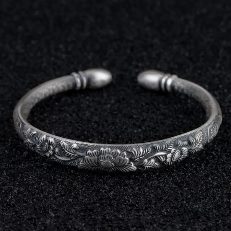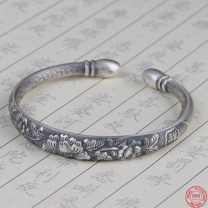 Delicate as an interdimensional petal, this bracelet blossoms on your wrist in cosmic connection. (pure silver)